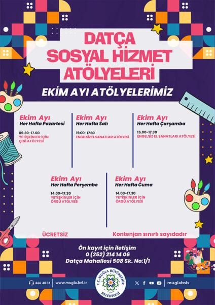 4 Ekim 2025 Kategori: Etkinlikler 0 Seydikemer Ekim Ayı Sosyal Hizmetler Atölyeleri Etkinliğine Davetlisiniz