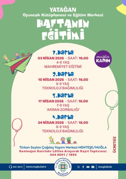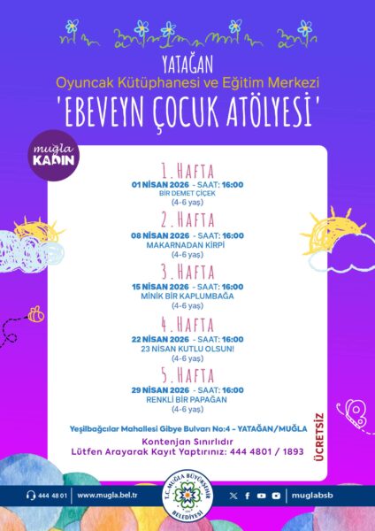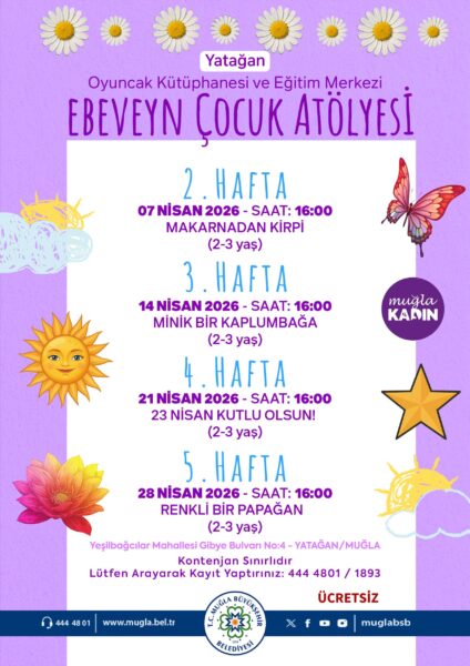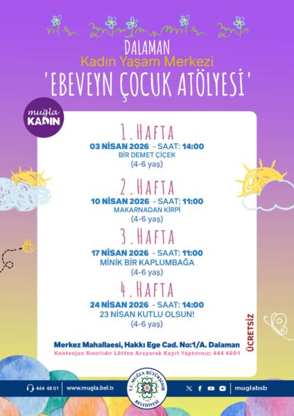 25 Mart 2026 Kategori: Etkinlikler 0 Dalaman Kadın Yaşam Merkezi Ebeveyn Çocuk Atölyesi 4-6 Yaş Etkinliğine Davetlisiniz